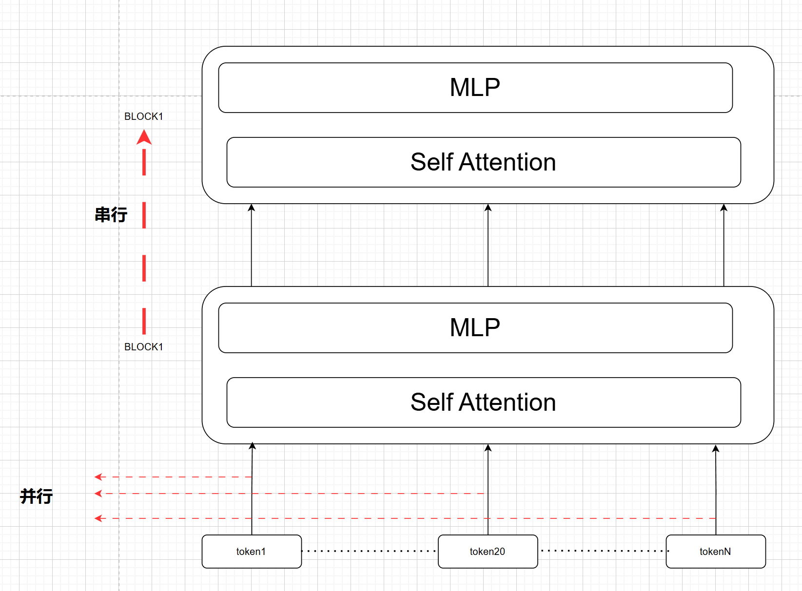 一张图描述并行,上图是以encode block来举例说明的 - 像gpt-2 这样的decode模型,输入一段query,到底是怎么做解码生成的?